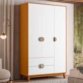 Tipo de Guarda Roupa: Solteiro | Tonalidade: Multicolorido | Quantidade de Portas: 3 | Fabricante: Móveis Albatroz Cor: Cinamomo/Branco