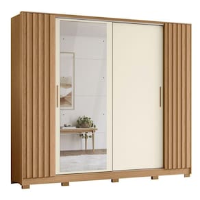 Com dimensoes generosas de 270 cm de largura, 235 cm de altura e 57 cm de profundidade, este guarda-roupa e ideal para otimizar o espaco em seu quarto. Sua estrutura em MDP garante durabilidade, enquanto os espelhos nas portas proporcionam uma sensacao de amplitude e luminosidade ao ambiente.