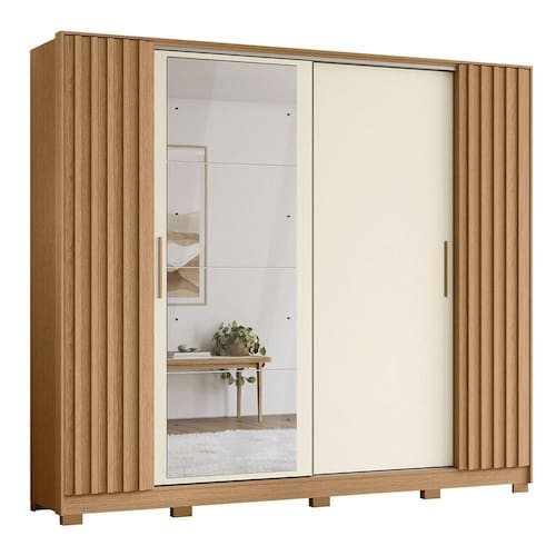 Guarda Roupa Jacarandá 4 Espelhos Ripado 1 Espelho Albatroz Freijó/off White () Guarda Roupa Jacaranda 4 Espelhos Ripado com 1 Espelho Albatroz Caracteristicas do Produto: O Guarda Roupa Jacaranda 4 Espelhos da marca Albatroz e a escolha perfeita para quem busca funcionalidade e estilo em um unico movel. Com um design moderno, ele se destaca por suas quatro portas deslizantes que facilitam o acesso ao seu interior, alem de quatro gavetas que oferecem espaco extra para organizacao.