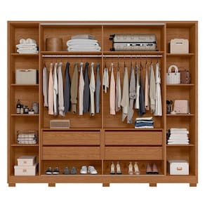 Com dimensoes generosas de 270 cm de largura, 235 cm de altura e 57 cm de profundidade, este guarda-roupa e ideal para quartos espacosos. A estrutura em MDP garante durabilidade e resistencia, suportando ate 235 kg. As 10 prateleiras internas e os cabideiros proporcionam uma organizacao eficiente, permitindo que voce aproveite ao maximo cada centimetro.