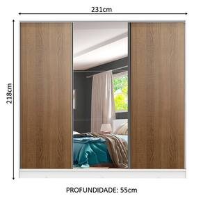 Medidas totais do armário: 218 cm de altura x 231 cm de largura x 55 cm de profundidade.