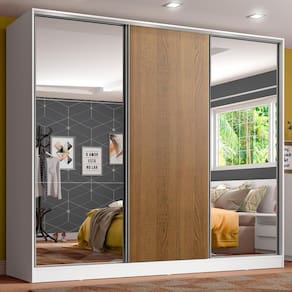 Guarda Roupa Juvenil 100% MDF Madesa Kevin 3 Portas de Correr com Espelhos - Branco/Rustic