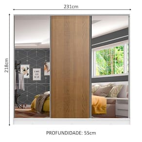 Medidas totais do armário: 218 cm de altura x 231 cm de largura x 55 cm de profundidade.