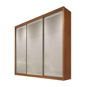 100 MDF, ideal para pequenos espaços, alto e com boa profundidade, colunado em 25mm, excelente divisão interna, trilho inferior em alumínio e roldanas com amortecedores, perfil puxador e batente alinhador em alumínio bronze, roldana superior com guia zero e freio, gavetas com puxadores e corrediças telescópicas, cabideiro e calceiro em alumínio.