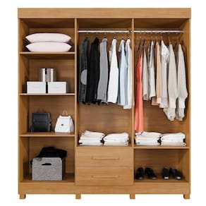 Guarda Roupa Leblon 6 Portas 2 Gavetas 7 Prateleiras Cinamomo O Guarda-Roupa Leblon e produzido em chapa de 15 mm que garante robustez e maior vida util, contem 6 portas, 7 prateleiras, 2 gavetas com corredicas telescopica, cabideiro em aluminio, espaco para longos, pes inclusos no produto e puxadores modernos, otimo custo-beneficio. Sua fabricacao utiliza a linha mdp perffect, que une a sustentabilidade a inovacao tecnologica, proporcionando durabilidade e facil limpeza; inspirando sofisticacao ao mobiliario. Sua pintura UV conta com boa resistencia, e facil de limpar e e ecologicamente correto, pois utiliza madeira de reflorestamento, evitando o desmatamento. Caracteristicas: Material principal: MDP Espessura da chapa: 15 mm Escala de brilho: semibrilho Sistema de montagem: parafuso, cavilha e cantoneiras metalicas Quantidade de Portas: 06 Quantidade de Gavetas: 02 Quantidade de Prateleiras: 07