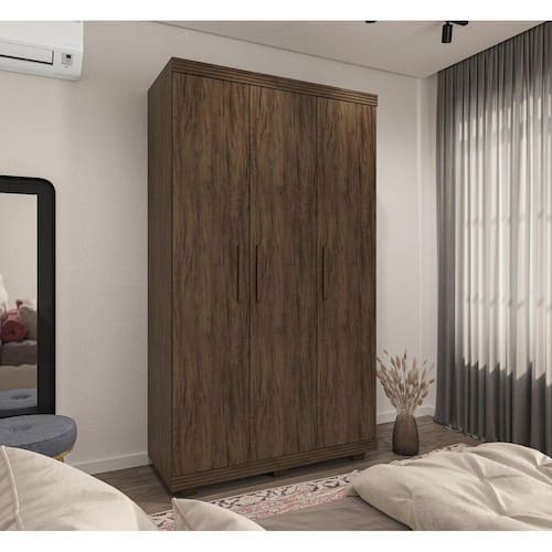 Guarda Roupa Lion 3 Portas 2 Gavetas com Pés - Lanza - Marrom Escuro