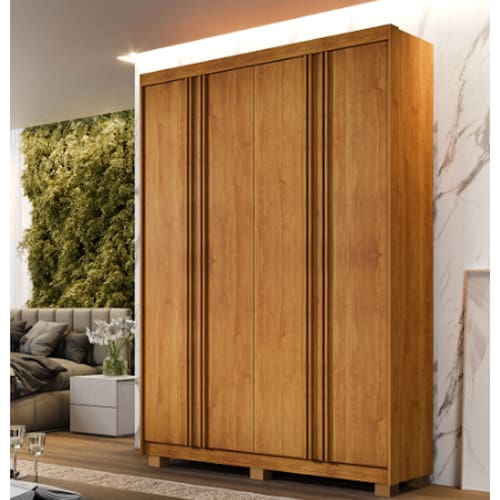 Guarda Roupa Casal Lisboa 4 Portas Ripadas 100% MDF - Benetil O Guarda Roupa Lisboa, confeccionado exclusivamente em MDF para garantir uma durabilidade excepcional. Com suas 4 portas, este guarda roupa é Uma excelente Escolha para seu quarto. Internamente, o Lisboa oferece um sistema inteligente de organização com 8 prateleiras estrategicamente posicionadas e nichos que proporcionam uma solução prática e sofisticada para armazenar suas roupas. As 3 gavetas espaçosas, equipadas com corrediças telescópicas, garantem uma experiência suave e duradoura. Detalhes finamente elaborados, como o cabideiro em alumínio, portas ripadas na cor do produto e pés inclusos, garantem que o Lisboa tenha uma qualidade superior. Este guarda-roupa não só oferece espaço de armazenamento, mas é um investimento em funcionalidade e design para o seu ambiente. Medidas: Altura: 225cm Largura: 143cm Profundidade: 49cm