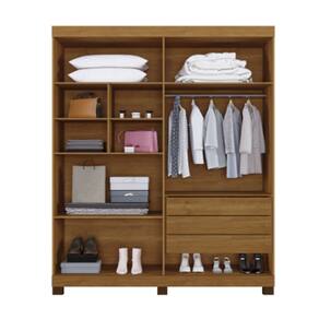 - Produto 100% MDF - Pés Inclusos - Puxadores Madeirados - 3 Gavetas com Corrediças Telescópicas - Cabideiro de Alumínio - Molduras Laterais - Portas Ripadas - Acabamento: Pintura UV - Recomendações de manutenção: Limpeza com pano umedecido. Não aplicar lustra móveis. - Complexidade da montagem: Difícil Importante: