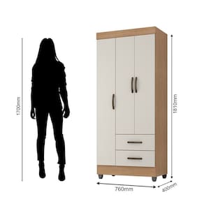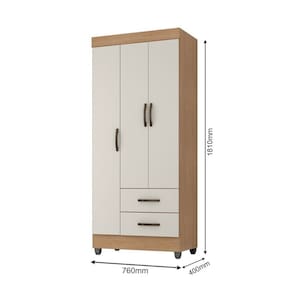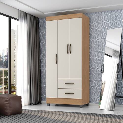 O móvel possui 3 portas convencionais, 2 gavetas externas com sistema de abertura com corrediças metálicas, 4 prateleiras, suportando até 2kg. Acabamento da Prateleira: Pintura UV Escala de Brilho da Prateleira: Semi-Fosco Possui Cabideiros: 01 Acabamento da Gaveta: Pintura UV Escala de Brilho da Gaveta: Semi-Fosco Material do Puxador da Gaveta: PVC Possui Organizador de Gaveta: Não Acabamento da Porta: Pintura UV Escala de Brilho da Porta: Semi-Fosco Material do Puxador da Porta: PVC Altura dos Pés: 7 cm Ambiente Principal: Quarto codigo_ean: 7909903746769 Complexidade da Montagem: Média: pode ser montado por mais de uma pessoa e/ou necessite de maior conhecimento para montagem Cor: Marrom/Off White Cor do Produto: Marrom/Off White Cor Flex: Não Cor Interna: Marrom Escala de Brilho: Semi-Fosco Gaveta com Chave: Não Itens Inclusos: 1 Guarda Roupa, Kit Ferragens e Manual de Montagem Linha ou Coleção: Linha Lite Manual de Especificação Técnica: https://product-hub-prd.madeiramadeira.com.br/915085/documents/919f8371-b39b-4337-bd0f-8f4b4c7f17502050794374317183886029151.pdf Manual de Montagem e Instalação: https://product-hub-prd.madeiramadeira.com.br/915085/documents/4beb365b-6e09-4108-a1c4-ac1eb14d6b0a205079137431718388598691.pdf Material da Gaveta: MDP Material da Porta: MDP Material da Prateleira: MDP Material dos Pés: PVC Material Principal: MDP modular: Não Montagem Flex: Não Necessita Montagem: Sim Origem do Produto: Nacional Peso: 37 kg Peso Máximo por Gaveta: 3 kg Peso Máximo por Prateleira: 2 kg Possui Calceiros: Não Possui Espelho: Não Possui Espelho Interno: Não Possui Ganchos: Não Possui iluminação: Não Possui Painel de TV: Não Possui Pés: 04 Possui Portas: Sim Possui Prateleiras: Sim Possui Sapateira: Não Produto Montado: Sim Quantidade de Gavetas: 02 Gavetas Quantidade de Prateleiras: 04 Prateleiras Recomendações de Uso, Manutenção e Limpeza: Limpeza apenas com um pano úmido. Não utilizar produtos químicos ou abrasivos. Sistema de Montagem: Parafusos, Pregos Suporta Até (kg): 21 kg Tipo de Corrediça da Gaveta: Metálica Simples Tipo de Dobradiça/Corrediça da Porta: Metálica Tipo de Gaveta: Externa Tipo de Guarda-Roupa: Solteiro Tipo de Puxador da Gaveta: Externo Tipo de Puxador da Porta: Externo