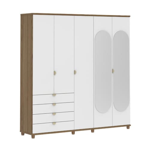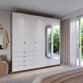 Guarda-Roupa Casal Look 5 Portas com 2 Espelhos Design Clean, Prático e Espaçoso