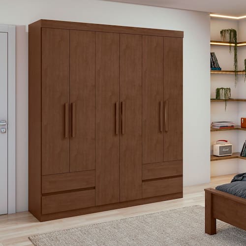 O Guarda-roupa Zeus 6 pts combina bem com qualquer espaço e se adequa perfeitamente aos dormitórios com espaços limitados, sem deixar de acomodar os itens necessários à rotina e mantendo o quarto sempre em ordem