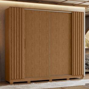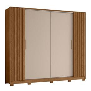 Feito em MDP.Possui detalhes nas portas laterais com acabamento ripado, 4 gavetas com corrediça telescópicas, 4 portas, 2 cabideiros e 10 prateleiras