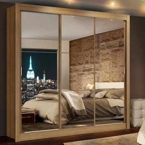 - Estrutura: 3 Prateleiras Totalizando 5 Nichos; 2 Gavetas Internas Brancas; 1 Cabideiro Grande; 3 Portas de Correr com Espelho