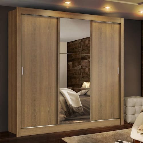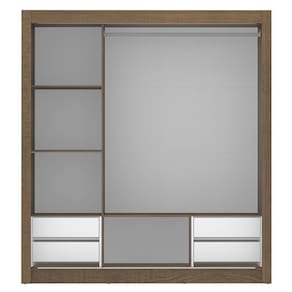- Estrutura: 3 Prateleiras Totalizando 5 Nichos; 4 Gavetas Internas Brancas; 1 Cabideiro Grande; 3 Portas de Correr (2 de Madeira e 1 com Espelho)
