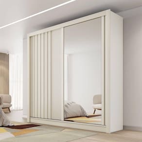 O guarda-roupa Lugano da Made Marcs é uma peça de mobiliário elegante e funcional, projetada para oferecer uma solução de armazenamento robusta e estilosa. Fabricado inteiramente em MDF, um material conhecido por sua durabilidade e facilidade de manutenção, este guarda-roupa apresenta uma altura de 219 cm, largura de 180 cm e profundidade de 56 cm, proporcionando um espaço interno amplo para organização. O acabamento em pintura UV confere ao produto uma superfície lisa e resistente, enquanto a cor off white permite que se integre harmoniosamente a diversos estilos de decoração. As portas de correr, incluindo uma com espelho, economizam espaço e adicionam funcionalidade, e as gavetas internas com corrediças telescópicas garantem um deslizar suave e fácil acesso aos itens armazenados. Além disso, o cabideiro metálico e as prateleiras organizadoras oferecem opções versáteis para acomodar uma variedade de itens, desde roupas até malas e roupas de cama. Com um design que combina estética e praticidade, o guarda-roupa Lugano é uma adição valiosa para qualquer quarto.