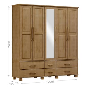Com um design encantador e acabamento impecável, este móvel foi criado para transformar o seu quarto em um ambiente de puro charme e aconchego. As 5 portas com detalhes sofisticados e o espelho central agregam amplitude e luminosidade ao espaço, enquanto as 6 gavetas espaçosas garantem organização com estilo. Disponível nas cores Freijó e Café, o guarda-roupa se destaca não apenas pela beleza, mas pela sua alta resistência e durabilidade, preservando por muitos anos o encanto natural da madeira maciça em sua forma mais nobre. É mais do que um móvel — é uma experiência sensorial e visual que transmite solidez, requinte e personalidade. Perfeito para quem valoriza qualidade e quer transformar o cotidiano com um toque de sofisticação.<Br>