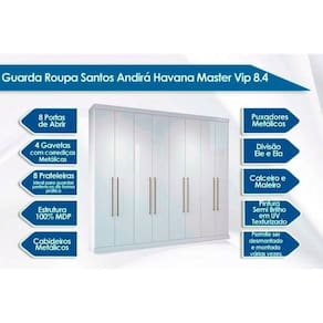 Guarda Roupa Casal 8 Portas e 4 Gavetas Master Vip 8.4 Branco - Santos Andirá