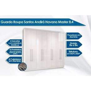 Guarda Roupa Casal 8 Portas e 4 Gavetas Master Vip 8.4 Branco - Santos Andirá