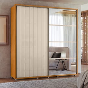 O ripado angular adiciona um toque de exclusividade, e a moldura envoltória de 2,5 cm valoriza cada detalhe com um acabamento sofisticado. Para completar, suas 4 gavetas com corrediças telescópicas oferecem organização impecável. Com 230 cm de largura, ele se adapta perfeitamente ao seu espaço. Acabamento da Prateleira: Pintura UV Escala de Brilho da Prateleira: Semi-Brilho Acabamento da Gaveta: Pintura Escala de Brilho da Gaveta: Semi-Brilho Possui Organizador de Gaveta: Não Acabamento da Porta: Pintura UV Escala de Brilho da Porta: Semi-Brilho Material do Puxador da Porta: Alumínio Acabamento dos Pés: Pintura Altura do Espelho: 106,9 cm Altura dos Pés: 5 cm Altura Máxima dos Pés: 5.0000 Ambiente Principal: Quarto codigo_ean: 7900288120434 Complexidade da Montagem: Média: pode ser montado por mais de uma pessoa e/ou necessite de maior conhecimento para montagem Cor: Cinamomo/Off White Cor do Produto: Cinamomo/Off White Cor Interna: Cinamomo Escala de Brilho: Semi-Brilho Espessura da Estrutura (mm): 15 mm Espessura das Portas (mm): 15 mm Espessura das Prateleiras (mm): 15 mm Espessura do Espelho: 3 mm Espessura do Fundo (mm): 3 mm Espessura do Fundo das Gavetas (mm): 3 mm Formato do Espelho: Retangular Gaveta com Chave: Não Itens Inclusos: 1 Guarda-Roupa, Manual de Montagem e Kit Ferragens Largura do Espelho: 54,9 cm Linha ou Coleção: Domitorios Manual de Montagem e Instalação: https://product-hub-prd.madeiramadeira.com.br/991851/documents/a5eff9ab-2c7f-4d35-90fb-e4df5406f6c6284328082617443070503509.pdf Marca: Madetec Material da Gaveta: MDF Material da Porta: MDF Material da Prateleira: MDF Material dos Pés: Plástico Material Principal: MDF modular: Não Necessita Montagem: Sim Origem do Produto: Nacional Peso: 63,3 kg Peso Máximo por Gaveta: 5 kg Peso Máximo por Prateleira: 5 kg Possui Calceiros: Não Possui Espelho: Sim Possui Pés: 10 Possui Portas: Sim Possui Prateleiras: Sim Produto Montado: Sim Quantidade de Cabideiros: 05 Cabideiros Quantidade de Espelho: 04 Espelhos com Tamanhos Iguais Quantidade de Gavetas: 04 Gavetas Quantidade de Portas com Espelhos: 1 Porta com Espelho Quantidade de Prateleiras: 08 Prateleiras Recomendações de Uso, Manutenção e Limpeza: Para a limpeza utilizar um pano limpo e seco. Não limpar com produtos abrasivos ou escovas;Não deixar exposta à luz do sol diretamente pois isso irá diminuir a vida útil do produto;Este produto Não é recomendado Para ambientes externos onde possa receber chuva. Sapatas Niveladoras: Não Sistema de Montagem: Parafuso,Cavilha Tipo de Corrediça da Gaveta: Metálica Telescópica Tipo de Dobradiça/Corrediça da Porta: Telescópica Tipo de Fixação do Espelho: Parafusos Tipo de Gaveta: Interna Tipo de Guarda-Roupa: Casal Tipo de Puxador da Gaveta: Embutido Tipo de Puxador da Porta: Externo
