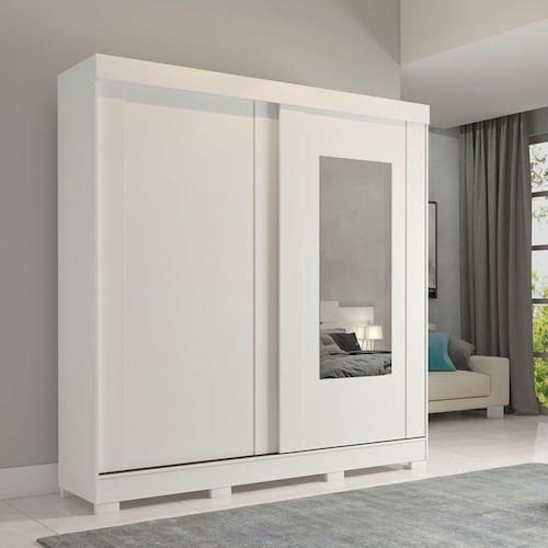 Guarda Roupa 100% MDF, espaçoso, com divisórias internas pensadas para uma perfeita organização. As portas de correr oferecem um ganho de espaço no ambiente e ainda os tornam mais elegantes e práticos. Uma das portas contém espelho medindo 119,2cm de altura e 45cm de largura, os acessórios são de qualidade superior, roldanas com regulagem para pisos desnivelados e rolamento para deslize suave. Suas 3 gavetas contam com corrediças metálicas telescópicas, os cabideiros são em alumínio com suportes metálicos. Kit com 8 Pés em ABS incluso. Acabamento da Prateleira: Verniz Escala de Brilho da Prateleira: Brilhante Possui Cabideiros: 01 Acabamento da Gaveta: Verniz Escala de Brilho da Gaveta: Brilhante Material do Puxador da Gaveta: Possui Organizador de Gaveta: Não Acabamento da Porta: Verniz Escala de Brilho da Porta: Brilhante Material do Puxador da Porta: Acabamento dos Pés: Pintura Acompanha Cama Auxiliar: Acompanha Colchão: Altura da Cama: Altura do Espelho: 119,2 Altura do Espelho 01: Altura do Espelho 02: Altura do Espelho 03: Altura do Espelho 04: Altura do Espelho 05: Altura do Espelho 06: Altura dos Pés: 5 Ambiente Principal: Quarto Cama Auxiliar Acompanha Colchão: Cama Auxiliar Suporta Até (kg): Cama Suporta Até (kg): Complexidade da Montagem: Alta: deve ser montado por um montador especializado Cor: Branco Cor do Produto: Branco Cor Flex: Cor Interna: Branco Escala de Brilho: Brilhante Espessura do Espelho: 3 Fita Integrada: Formato do Espelho: Retangular Gaveta com Chave: Não Guarda-Roupa Suporta Até (kg): 60 Informações Complementares: Itens Inclusos: 1 Roupeiro e Manual de Montagem Largura da Cama: Largura do Espelho: 45 Largura do Espelho 01: Largura do Espelho 02: Largura do Espelho 03: Largura do Espelho 04: Largura do Espelho 05: Largura do Espelho 06: Linha ou Coleção: Ilheus Manual de Especificação Técnica: Manual de Montagem e Instalação: https://cdn2.madeiramadeira.com.br/atributo/panan-m-veis/868992-roupeiro-ilh-us-2-portas-slide.pdf Material da Gaveta: MDF Material da Porta: MDF Material da Prateleira: MDF Material dos Pés: ABS Material Principal: MDF Montagem Flex: Necessita Montagem: Sim Origem do Produto: Nacional Peso: 140,4 Peso Máximo por Gaveta: 5 Peso Máximo por Prateleira: 10 Possui Calceiros: Não Possui Espaço para Vestidos Longos: Sim Possui Espelho: Sim Possui Espelho Interno: Possui Ganchos: Possui iluminação: Possui Painel de TV: Possui Pés: 08 Possui Portas: 02 Possui Prateleiras: 07 Possui Sapateira: Não Profundida de Cama: Quantidade de Espelho: 01 Recomendações de Uso, Manutenção e Limpeza: Limpar com pano umedecido seguido de pano seco. Não utilizar produtos químicos. Sapatas Niveladoras: Não Sistema de Montagem: Parafuso, cavilha, porcas plásticas, minifix e pregos Tamanho: Tamanho do Colchão Indicado (L x C): Tamanho do Colchão Indicado Cama Auxiliar: Tipo de Corrediça da Gaveta: Metálica Telescópica Tipo de Dobradiça/Corrediça da Porta: Metálica Tipo de Estrado: Tipo de Fixação do Espelho: Parafusos Tipo de Gaveta: Interna Tipo de Guarda-Roupa: Solteiro Tipo de Madeira Maciça: Tipo de Madeira Maciça da Gaveta: Tipo de Madeira Maciça da Porta: Tipo de Madeira Maciça da Prateleira: Tipo de Madeira Maciça do Puxador da Gaveta: Tipo de Madeira Maciça do Puxador da Porta: Tipo de Madeira Maciça dos Pés: Tipo de Puxador da Gaveta: Não Possui Tipo de Puxador da Porta: Embutido