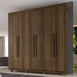 Guarda Roupa Milão 6 Portas 3 Gavetas 7 Prateleiras - Beneti Imbuia O Guarda-Roupa Milao e produzido em chapa de 15 mm que garante robustez e maior vida util, contem 6 portas, 7 prateleiras, 3 gavetas com corredicas telescopica, cabideiro em aluminio, pes inclusos no produto e puxadores, otimo custo-beneficio. Sua fabricacao utiliza a linha mdp perffect, que une a sustentabilidade a inovacao tecnologica, proporcionando durabilidade e facil limpeza; inspirando sofisticacao ao mobiliario. Sua pintura UV conta com boa resistencia, e facil de limpar e e ecologicamente correto, pois utiliza madeira de reflorestamento, evitando o desmatamento. Caracteristicas: Material principal: MDP Espessura da chapa: 15 mm Escala de brilho: semibrilho Acabamento: Pintura UV Sistema de montagem: parafuso, cavilha e cantoneiras metalicas Quantidade de Portas: 06 Quantidade de Gavetas: 03 Quantidade de Prateleiras: 07