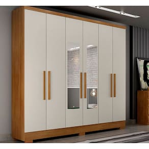 Guarda Roupa Casal Milly 6 Portas 4 Gavetas – Novo Horizonte Transforme o seu quarto com o Guarda Roupa Milly, uma peça que alia beleza, funcionalidade e organização. Com 6 portas articuladas e 4 gavetas com corrediças telescópicas, este roupeiro é perfeito para acomodar suas roupas e acessórios, mantendo tudo em ordem e ao seu alcance. Principais Características: Estrutura em MDP: Material resistente e duradouro, garantindo uma excelente relação entre custo e qualidade. Cabideiros em alumínio: Permite armazenar suas roupas penduradas de forma organizada, evitando amassados. Dobradiças metálicas e puxadores amadeirados: Abertura suave das portas e um toque elegante no acabamento. 4 gavetas espaçosas: Equipadas com corrediças telescópicas para um deslizamento suave e durabilidade, ideal para armazenar roupas dobradas e pequenos objetos. 5 prateleiras internas: Para uma melhor organização de roupas e acessórios, separando peças de forma prática e funcional. 6 pés: Garantem maior estabilidade e facilitam a limpeza do espaço abaixo do móvel. Especificações Técnicas: Portas: 6 portas articuladas Gavetas: 4 gavetas com corrediças telescópicas Prateleiras: 5 prateleiras internas Cabideiros: Alumínio Puxadores: Amadeirados Estrutura: MDP Dobradiças: Metálicas Possui espelho ou vidro: Não Ideal para quem busca um guarda-roupa espaçoso e elegante, o Guarda Roupa Casal Milly vai tornar o seu quarto ainda mais aconchegante e organizado!