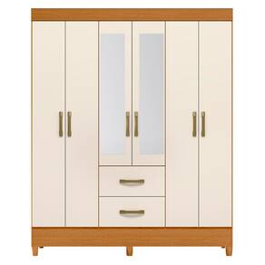 Produto: Guarda Roupa Mobi 6 Portas com Espelho Cor: Cinamomo/Off White Pés E Espelhos Inclusos Escala de Brilho: Fosco/Brilho Altura (m): 1,81 Largura (m): 1,47 Profundidade (m): 0,47 Peso (kg): 64,639 Material: MDP Acabamento: Pintura Uv Material do Puxador: Abs Tipo de Cabideiro: Madeira Quantidade de Gavetas: 2 - Tipo de Corrediça: Metálica Quantidade de Portas: 6 - Tipo de Porta: Bater Quantidade de Prateleiras: 2 Rodízios: Não Quantidade de Pés: 6 - Material dos Pés: ABS Necessita Montagem: SIM Espelho: Kit 04 Espelhos 0,44 X 0,18 Cada Manutenção: Limpar Com Flanela Ou Pano Macio Seco, Não Utilizar Produtos Abrasivos, Desengordurantes, Álcool Ou Solvente. Não Expor O Produto Diretamente À Luz Solar E À Umidade. Garantia: 3 Meses