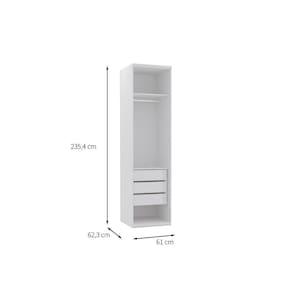 Guarda Roupa Modulado 1 Porta 3 Gavetas Com Espelho Branco 61cm Otimize seu ambiente com estilo! Escolha guarda-roupas modulados e aproveite o melhor do design inteligente com economia. Com medidas e variações adaptáveis ao seu espaço, você garante a elegância e funcionalidade de um planejado, mas com um investimento mais acessível e montagem mais rápida e fácil.Produzidos 100% em MDF, nossos modelos oferecem acabamento premium, dobradiças suaves, corrediças telescópicas silenciosas, trilhos embutidos e puxadores em aço bronze, unindo durabilidade e medir seu espaço, escolher o tamanho e a cor que mais combinam com você. ESPECIFICAÇÕES TÉCNICAS: - Material: MDF; - Acabamento: Pintura UV; - de Portas: 1 Porta; - de Gavetas: 4 Gavetas; - de Nicho: Não Possui; - Possui Prateleira? Sim; - Possui Espelho? Sim; - Possui Pés? Não; - Material dos Pés: Não Possui; - Possui Puxadores? Sim; - Material dos Puxadores: Alumínio bronze; - Produto precisa de montagem? Sim; - Garantia: 3 Meses Contra de fabricação; - Medidas: LarguraxProfundidadexAltura; 61x62,3x235,4cm;
