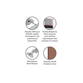 O Guarda Roupa Modulado Prime foi desenvolvido se adequando a vários espaços, de grandes a pequenos. Possui 236 cm de altura oferece divisórias para atender diversas necessidades, profundidade de 56cm possibilitando acomodar roupas sem amassar. Produzido em MDP de 15mm, dobradiças Slowmotin reforçadas em 35mm, a montagem é inteira por minifix que proporciona um acabamento impecável e fundos embutidos com perfil usinado para melhor acabamento e maior resistência.