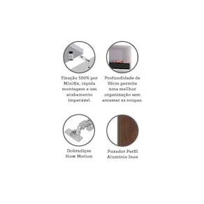 O Guarda Roupa Modulado Prime foi desenvolvido se adequando a vários espaços, de grandes a pequenos. Possui 236 cm de altura oferece divisórias para atender diversas necessidades, profundidade de 56cm possibilitando acomodar roupas sem amassar. Produzido em MDP de 15mm, dobradiças Slowmotin reforçadas em 35mm, a montagem é inteira por minifix que proporciona um acabamento impecável e fundos embutidos com perfil usinado para melhor acabamento e maior resistência.