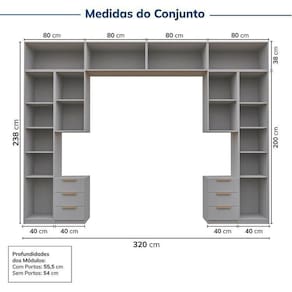 4x Ponte Modular 80cm com 2 Portas Jade Cinza Urbano Largura: 80 cm Altura: 38 cm Peso: 17,1 kg Profundidade: 54 cm Necessita Montagem: Sim