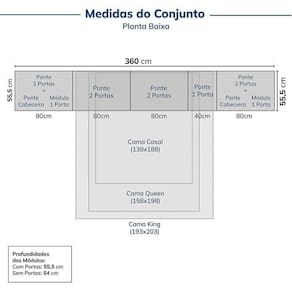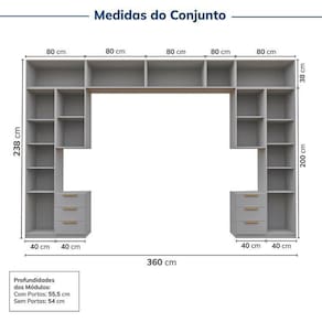 4x Ponte Modular 80cm com 2 Portas Jade Cinza Urbano Largura: 80 cm Altura: 38 cm Peso: 17,1 kg Profundidade: 54 cm Necessita Montagem: Sim