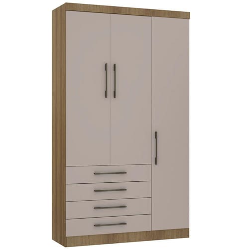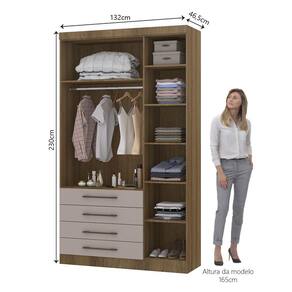 Guarda Roupa Modulado 132cm 3 Portas e 4 Gavetas Paris Luciane Móveis