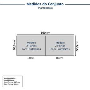 Largura do Conjunto: 160 cm Marca: CabeCasa MadeiraMadeira Possui Portas: Não Suporta Até (kg): 40 kg