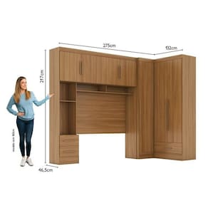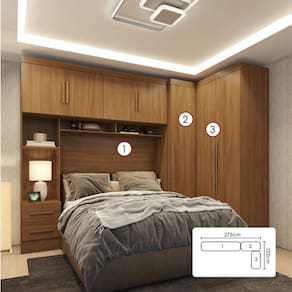 1x Módulo Closet Smart Aéreo com Criado 2 Gavetas com Maleiro Cinamomo Largura: 185.6 Altura: 217 Peso: 64.75 Profundidade: 40 Necessita Montagem: Sim