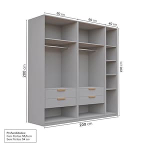 2x Kit 2 Portas para Guarda-Roupa Modular 80cm Jade Cinza Urbano Largura: 40 cm Altura: 200 cm Peso: 16,63 kg Profundidade: 1,5 cm Necessita Montagem: Sim