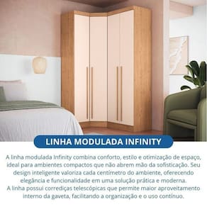 A linha modulada Infinity combina conforto, estilo e otimização de espaço, ideal para ambientes compactos que não abrem mão da sofisticação. Seu design inteligente valoriza cada centímetro do ambiente, oferecendo elegância e funcionalidade em uma solução prática e moderna.