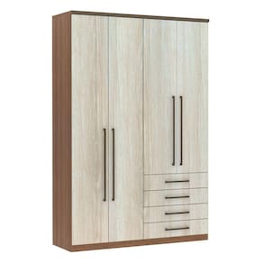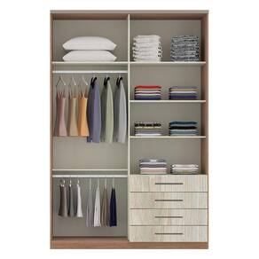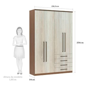 Características: Matéria Prima: MDP 15mm Corpo/Caixaria: MDP 15mm com acabamento Vanilla UV Touch Frontais: MDP 15mm com acabamento em Linho BP e Legno Crema BP. Prateleiras: 5 Portas: 4 Gavetas: 4 Corrediças Telescópicas Dobradiças: Sim, metálicas com 35mm Puxadores: Haste em Alumínio Champagne Cabideiro: 2 Montagem com Minifix, Cantoneiras, Parafusos e cavilhas.