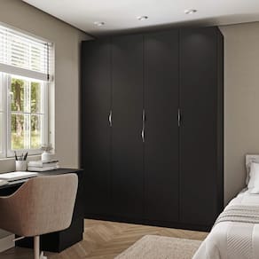 Guarda Roupa Modulado 4 Portas com Cabideiro Hera CabeCasa MadeiraMadeira Preto Onix/Cromado