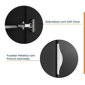 Informações Complementares: Puxador Metálico Acetinado, portas em chapa de 18mm com dobradiças com amortecimento, fundos em 6mm, cabideiro em aço cromado suportando até 10kg e Maleiro até 25kg.