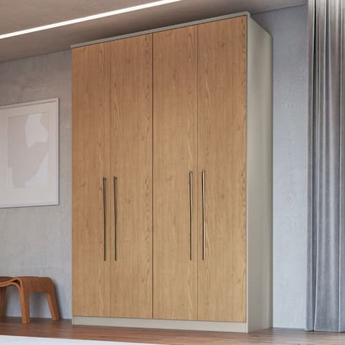 O Guarda-Roupa 4 portas da linha Elegance oferece um aproveitamento total do ambiente. Seu design funcional permite otimizar o seu espaço com prateleiras e cabideiros, garantindo organização e fácil acesso. Equipado com corrediças telescópicas de extração total que oferece um ótimo aproveitamento interno e abertura suave, aumentando a durabilidade e o conforto no uso diário.