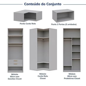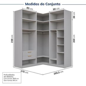 1x Guarda-Roupa de Canto Reto Modular 95cm sem Portas com Cabideiros Jade Cinza Urbano Largura: 95 cm Altura: 200 cm Peso: 71,92 kg Profundidade: 95 cm Necessita Montagem: Sim