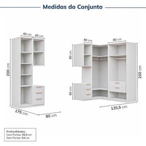 1x Guarda-roupa Modular 80cm sem Portas com Gaveteiro Jade Cabecasa Madeiramadeira Branco