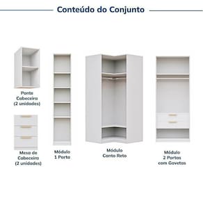 1x Guarda-roupa de Canto Reto Modular 95cm sem Portas com Cabideiros Jade Cabecasa Madeiramadeira Branco