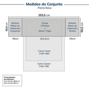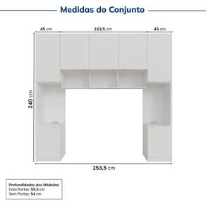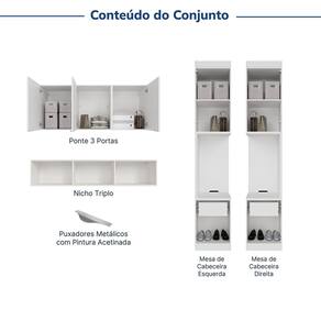O Guarda Roupa Modulado 7 Portas 4 peças Cabeceira Hera CabeCasa foi desenvolvido para trazer a experiência de ter seu móvel customizado de acordo com a necessidade do seu espaço. O conjunto conta com Dois modulos de Mesa de Cabeceira, uma ponte 3 portas e um Nicho Triplo. Com essa proposta, CabeCasa oferece para seus clientes a possibilidade prática e custo-benefício em oferecer uma linha de modulados que faça a função de um móvel planejado. O cliente pode escolher entre os módulos disponíveis, em diferentes variações de acabamentos, os que mais se adaptam ao seu gosto e ao seu dia a dia. Além disso, conta com design moderno que irá trazer muito mais sofisticação e aconchego para a decoração.! Acabamento da Prateleira: Pintura Escala de Brilho da Prateleira: Semi-Fosco Possui Cabideiros: Não Acabamento da Gaveta: Pintura Escala de Brilho da Gaveta: Semi-Fosco Possui Organizador de Gaveta: Não Acabamento da Porta: Pintura Escala de Brilho da Porta: Semi-Fosco Material do Puxador da Porta: Metal Altura dos Pés: 11 Altura Máxima dos Pés: 11.0000 Ambiente Principal: Quarto codigo_ean: 7909903827536 Complexidade da Montagem: Alta: deve ser montado por um montador especializado Cor: Branco Geada/Cinza Cor do Produto: Branco Geada/Cinza Cor Interna: Branco Geada Escala de Brilho: Semi-Fosco Gaveta com Chave: Não Itens Inclusos: 02 Módulo de Mesa de Cabeceira, 01 Ponte 3 Portas, 01 Nicho Triplo Linha ou Coleção: Hera Manual de Montagem e Instalação: https://product-hub-prd.madeiramadeira.com.br/925517/documents/20b03884-b5fb-41d5-8f02-0c2fbd3285742165052489017217636173392.pdf Material da Gaveta: MDP Material da Porta: MDP Material da Prateleira: MDP Material dos Pés: MDP Material Principal: MDP Medida de Cada Item: Ponte 3 Portas: 165cm x 55,5cm x 68cm. Nicho Triplo: 165cm x 40cm x 34cm. Módulo Mesa de Cabeceira: 45cm x 55,5cm x 240cm. modular: Sim Montagem Flex: Por ser modulado pode ser montado de acordo com a preferência do cliente. Necessita Montagem: Sim O Módulo Pode ser utilizado individualmente: Sim Origem do Produto: Nacional Peso: 213,499 kg Peso Máximo por Gaveta: 5 kg Peso Máximo por Prateleira: 10 kg Possui Calceiros: Não Possui Espelho: Não Possui Pés: Rodapé Possui Portas: Sim Possui Prateleiras: Sim Produto Montado: Sim Quantidade de Gavetas: 02 Gavetas Quantidade de Prateleiras: 02 Prateleiras Recomendações de Uso, Manutenção e Limpeza: Deve ser realizada com pano limpo e seco. Sistema de Montagem: Cavilha, Parafuso e Minifix. Tipo de Corrediça da Gaveta: Metálica Telescópica Tipo de Dobradiça/Corrediça da Porta: Metálica Tipo de Gaveta: Interna Tipo de Guarda-Roupa: Modulado Casal Tipo de Puxador da Gaveta: Não Possui Tipo de Puxador da Porta: Externo