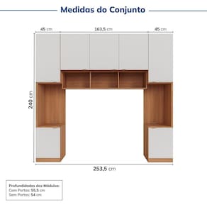 O Guarda Roupa Modulado 7 Portas 4 peças Cabeceira Hera CabeCasa foi desenvolvido para trazer a experiência de ter seu móvel customizado de acordo com a necessidade do seu espaço. O conjunto conta com Dois modulos de Mesa de Cabeceira, uma ponte 3 portas e um Nicho Triplo. Com essa proposta, CabeCasa oferece para seus clientes a possibilidade prática e custo-benefício em oferecer uma linha de modulados que faça a função de um móvel planejado. O cliente pode escolher entre os módulos disponíveis, em diferentes variações de acabamentos, os que mais se adaptam ao seu gosto e ao seu dia a dia. Além disso, conta com design moderno que irá trazer muito mais sofisticação e aconchego para a decoração.! Acabamento da Prateleira: Finish Foil Escala de Brilho da Prateleira: Semi-Fosco Possui Cabideiros: Não Acabamento da Gaveta: Finish Foil Escala de Brilho da Gaveta: Semi-Fosco Possui Organizador de Gaveta: Não Acabamento da Porta: Pintura Escala de Brilho da Porta: Semi-Fosco Material do Puxador da Porta: Metal Altura dos Pés: 11 Altura Máxima dos Pés: 11.0000 Ambiente Principal: Quarto codigo_ean: 7909903827598 Complexidade da Montagem: Alta: deve ser montado por um montador especializado Cor: Louro/Branco Geada/Cinza Cor do Produto: Louro/Branco Geada/Cinza Cor Interna: Louro Escala de Brilho: Semi-Fosco Gaveta com Chave: Não Itens Inclusos: 02 Módulo de Mesa de Cabeceira, 01 Ponte 3 Portas, 01 Nicho Triplo Linha ou Coleção: Hera Manual de Montagem e Instalação: https://product-hub-prd.madeiramadeira.com.br/925523/documents/8ae723ce-c81a-439d-bf7c-dca73ebf4dbb2165247489017217642943739.pdf Material da Gaveta: MDP Material da Porta: MDP Material da Prateleira: MDP Material dos Pés: MDP Material Principal: MDP Medida de Cada Item: Ponte 3 Portas: 163,5cmx55,5cmx68cm. Nicho Triplo: 163,5cmx40cmx34cm. Módulo Mesa de Cabeceira: 45cmx55,5cmx240cm. modular: Sim Montagem Flex: Por ser modulado pode ser montado de acordo com a preferência do cliente. Necessita Montagem: Sim O Módulo Pode ser utilizado individualmente: Sim Origem do Produto: Nacional Peso: 213,49 kg Peso Máximo por Gaveta: 5 kg Peso Máximo por Prateleira: 10 kg Possui Calceiros: Não Possui Espelho: Não Possui Pés: Rodapé Possui Portas: Sim Possui Prateleiras: Sim Produto Montado: Sim Quantidade de Gavetas: 02 Gavetas Quantidade de Prateleiras: 02 Prateleiras Recomendações de Uso, Manutenção e Limpeza: Deve ser realizada com pano limpo e seco. Sistema de Montagem: Cavilha, Parafuso e Minifix. Tipo de Corrediça da Gaveta: Metálica Telescópica Tipo de Dobradiça/Corrediça da Porta: Metálica Tipo de Gaveta: Interna Tipo de Guarda-Roupa: Modulado Casal Tipo de Puxador da Gaveta: Não Possui Tipo de Puxador da Porta: Externo