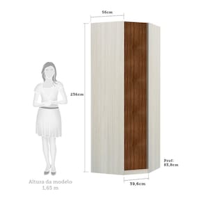 Características: Matéria Prima: MDP 15mm Corpo/Caixaria: MDP Legno Crema PF. Frontais: MDP BP. Estrutura e prateleira: FF Prateleiras: 6 Portas: 1 Gavetas: Não Corrediças: Não Dobradiças: Sim, metálicas Curvas Ø35mm Puxadores: Perfil Alumínio Cabideiro: 1 Montagem com Minifix, Cantoneiras, Parafusos e cavilhas.