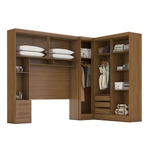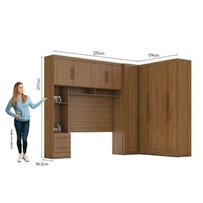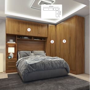 1x Módulo Closet Smart Aéreo com Criado 2 Gavetas com Maleiro Cinamomo Largura: 185.6 Altura: 217 Peso: 64.75 Profundidade: 40 Necessita Montagem: Sim