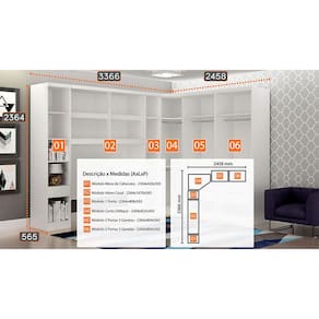 Conteúdo da Embalagem: 01 Guarda Roupa Modulado Safira 005 01 Kit Ferragens 01 Manual de Montagem