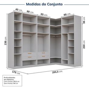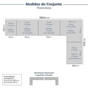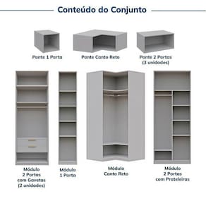 1x Kit 2 Portas para Guarda-Roupa de Canto Reto Modular 95cm Jade Cinza Urbano